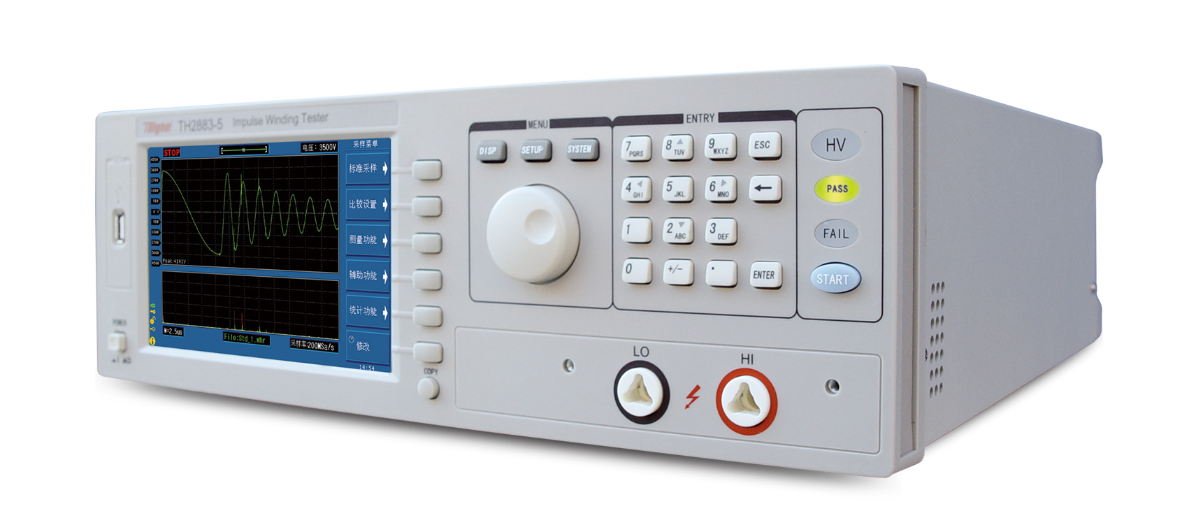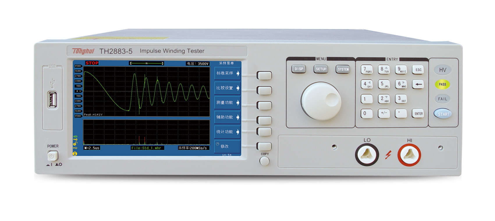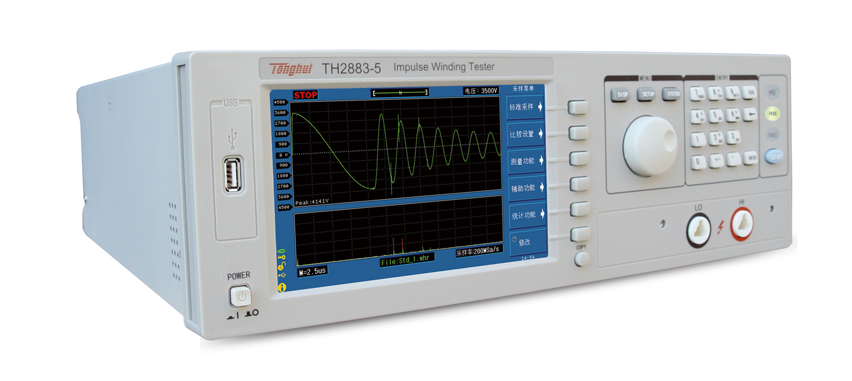 ? 沖電壓,是測試各種線圈的標配產品。TH2883-10具有最高10kV的脈沖輸出電壓,可測試更高絕緣耐壓的匝間測試。