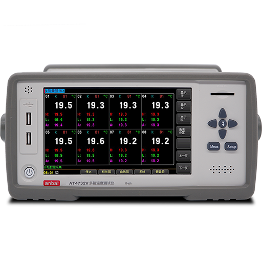 AT47V系列多路溫度測試儀采用高性能ARM微處理器控制,7英寸彩色液晶屏顯示,觸摸屏操作,方便查看溫度值,溫度變化曲線,柱狀圖等,可同時對多路溫度數據進行采集,上超下超報警和通訊傳輸,AT47V系列可采集64路溫度數據,兼容K/N/E/J/T/R/S/B型熱電偶,響應速度快,數據穩定,同時具備斷偶檢測功能。每通道可單獨設置,獨立校正。