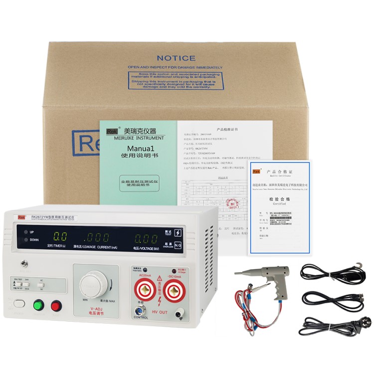 RK2670YM/RK2672YM醫用耐壓測試儀具有常規耐壓側儀所有的功能外,增加了電弧(閃絡)偵測功能,通過外接示波器,可以直觀、準確、快速、可靠的檢測到被測電氣設備的“閃絡”現象,被測電氣設備無“閃絡”現象時,示波器顯示一個穩定的“李沙育圖形(即一個閉合的圓環)”,若被測電氣設備發生“閃絡”現象,則李沙育圖形的邊緣會出現較大的電氣設備發生“閃絡”現象以保證被測電氣設備的安全。本產品同時也適合需要檢測“閃絡”缺陷各種電氣設備等,是醫用電氣設備制造商、維修部門、使用單位以及產品質量檢測部門、技術監督部門不可少的耐壓測試儀。