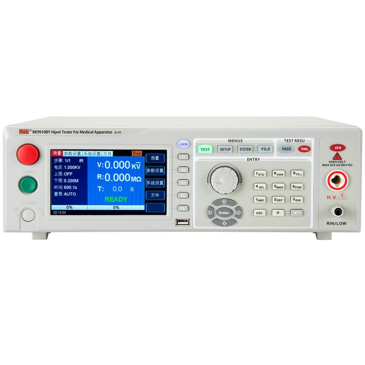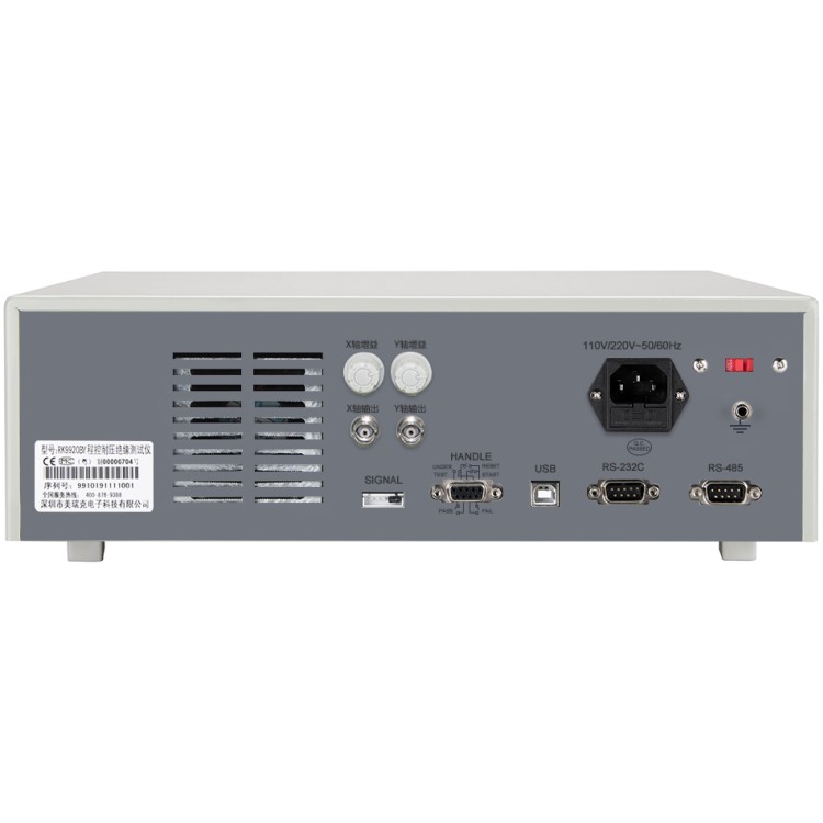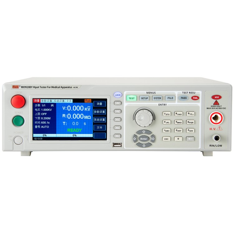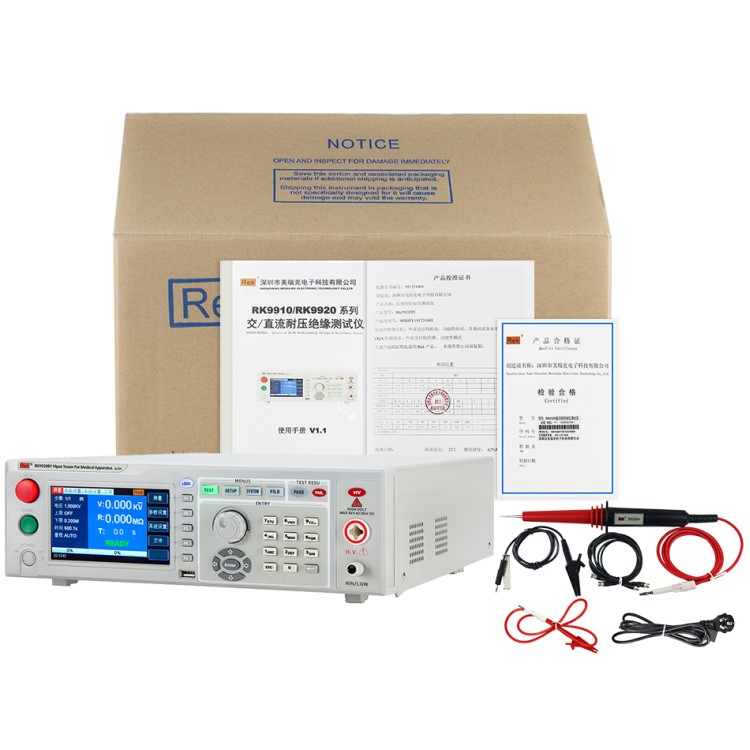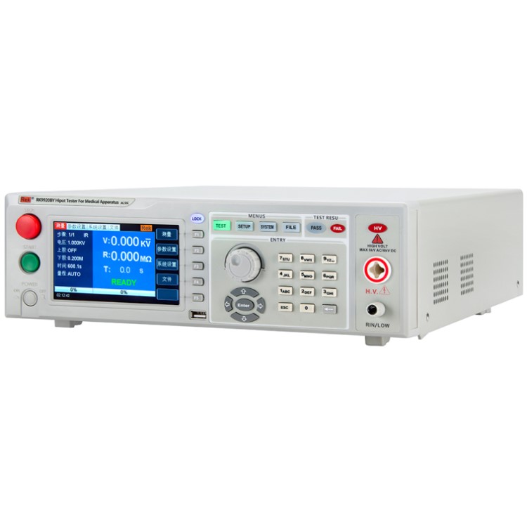 本系列程控耐壓測試儀均采用高速M(fèi)CU和大規(guī)模數(shù)字電路設(shè)計(jì)的高性能的安規(guī)測試儀,其輸出電壓的大小、輸出電壓的上升、下降、輸出電壓的頻率完全由MCU控制,能實(shí)時(shí)顯示擊穿電流值和電壓值,并具有軟件校準(zhǔn)功能,配備PLC接口、RS232C、RS485、USB device、USB Host接口,可方便與計(jì)算機(jī)或PLC組成綜合測試系統(tǒng)。 RK99系列程控醫(yī)用耐壓測試儀具有常規(guī)耐壓測試儀所有功能外,增加了電弧(閃絡(luò))偵測功能,通過外接示波器,可以直觀、準(zhǔn)確、快速、可靠地檢測到被測電氣設(shè)備的“閃絡(luò)”現(xiàn)象被測電氣設(shè)備無“閃絡(luò)”現(xiàn)象時(shí),示波器顯示一個(gè)穩(wěn)定的“李沙育圖形即一個(gè)閉合的圓環(huán)”,若被測電氣設(shè)備發(fā)生“閃絡(luò)”現(xiàn)象,則李沙育圖形的邊綠會出現(xiàn)較大的電氣設(shè)備發(fā)生“閃絡(luò)”現(xiàn)象以保證被測電氣設(shè)備的安全。本產(chǎn)品同時(shí)也適合需要檢測“閃絡(luò)”缺陷各種電氣設(shè)備等,是醫(yī)用電氣設(shè)備制造商、維修部門、使用單位以及產(chǎn)品質(zhì)量檢驗(yàn)部門、技術(shù)監(jiān)督部門不可少的耐壓測試儀。