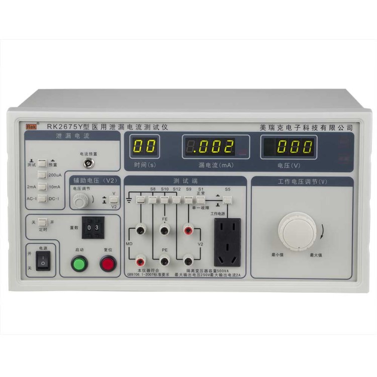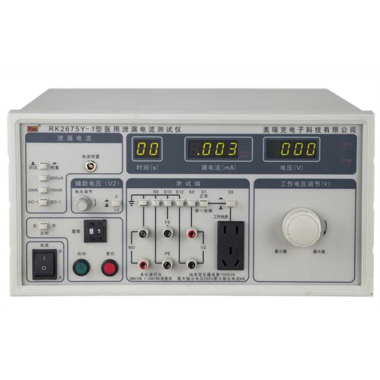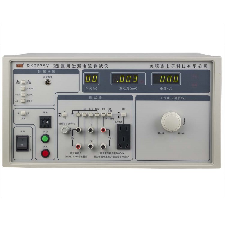 RK2675Y系列醫用泄漏電流測試儀用于測量醫用電氣設備的連續漏電流和患者輔助電流的檢測試驗設備。